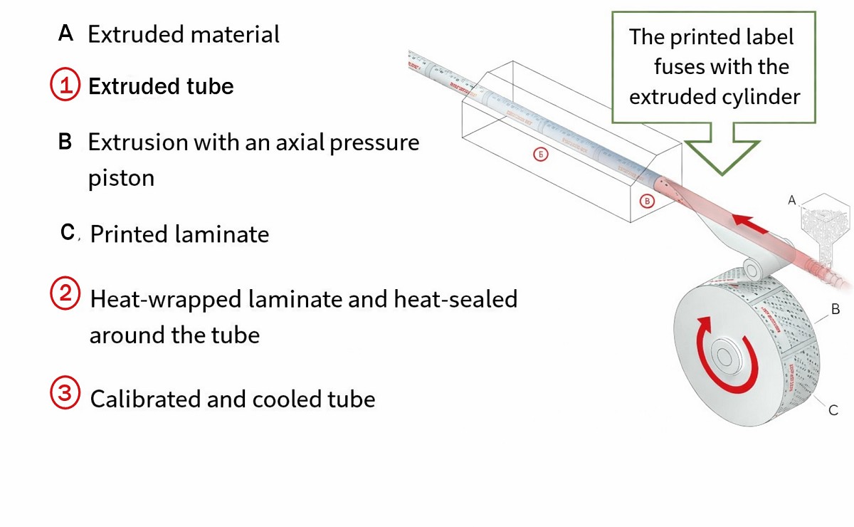 Unlike traditional methods, Infinia allows the printed label to be completely fused directly to the extruded cylinder during the production process.